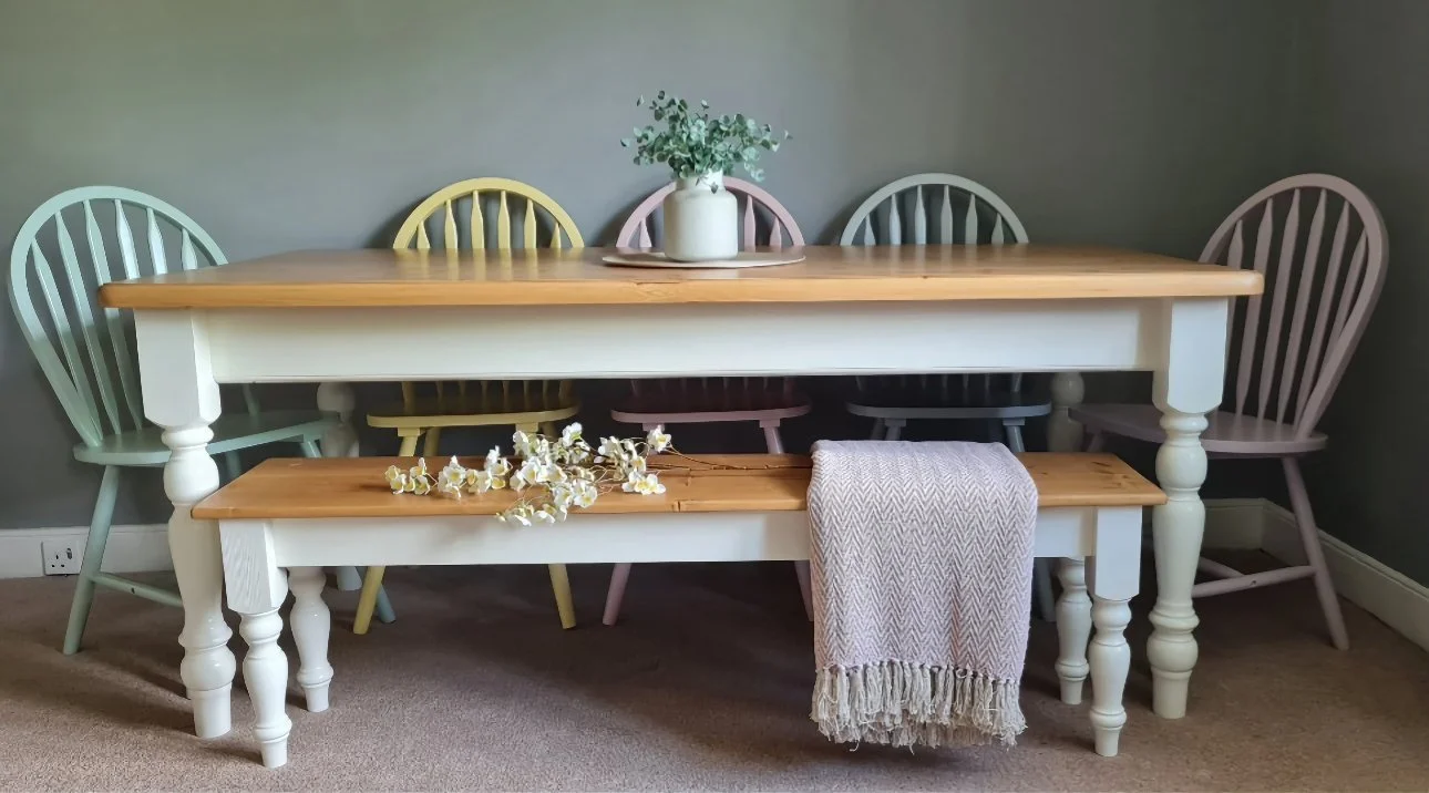We stock a range of pre-painted farmhouse tables, chairs and benches alongside other bespoke items.